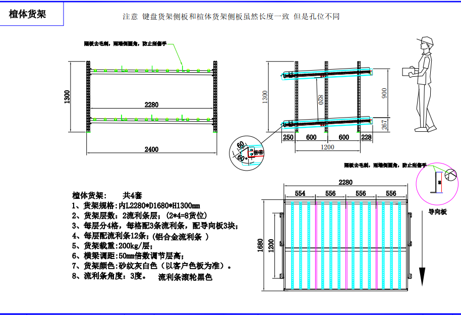 上圖是我們司給聯(lián)想公司生產(chǎn)的流利式貨架,貨架參數(shù)是:L2140*W1500*H1750 三層流利條 每層分3格、每層配3條流利條,配導向板2塊、每層配9條流利條(鋁合金流利條)每層載重200KG 橫梁調(diào)距是50mm倍數(shù)調(diào)節(jié)層高。貨架顏色:以客戶樣本為準 流利條的角度為3度,流利條滾輪黑色.